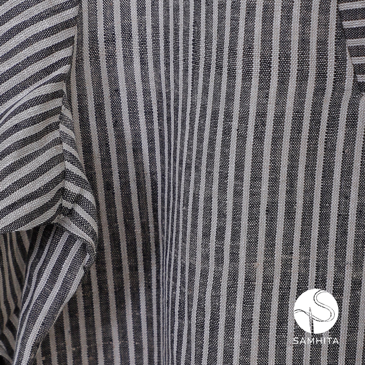 Men's Brown Stripe Khadi Cotton Short Kurta with Yoke Detail and Wooden Button (MK 102 C)