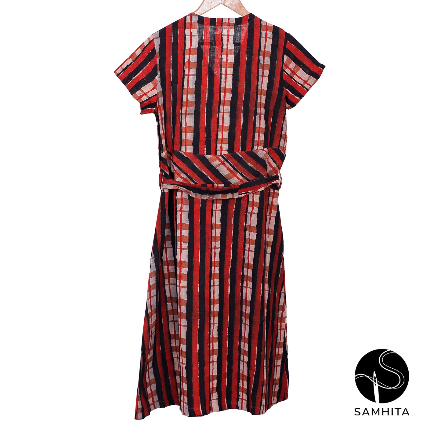 Crafted from hand-spun, handwoven cotton khadi, this hand-block-printed dress with a cinched waist offers comfort and style. A perfect choice for those who value quality and craftsmanship.