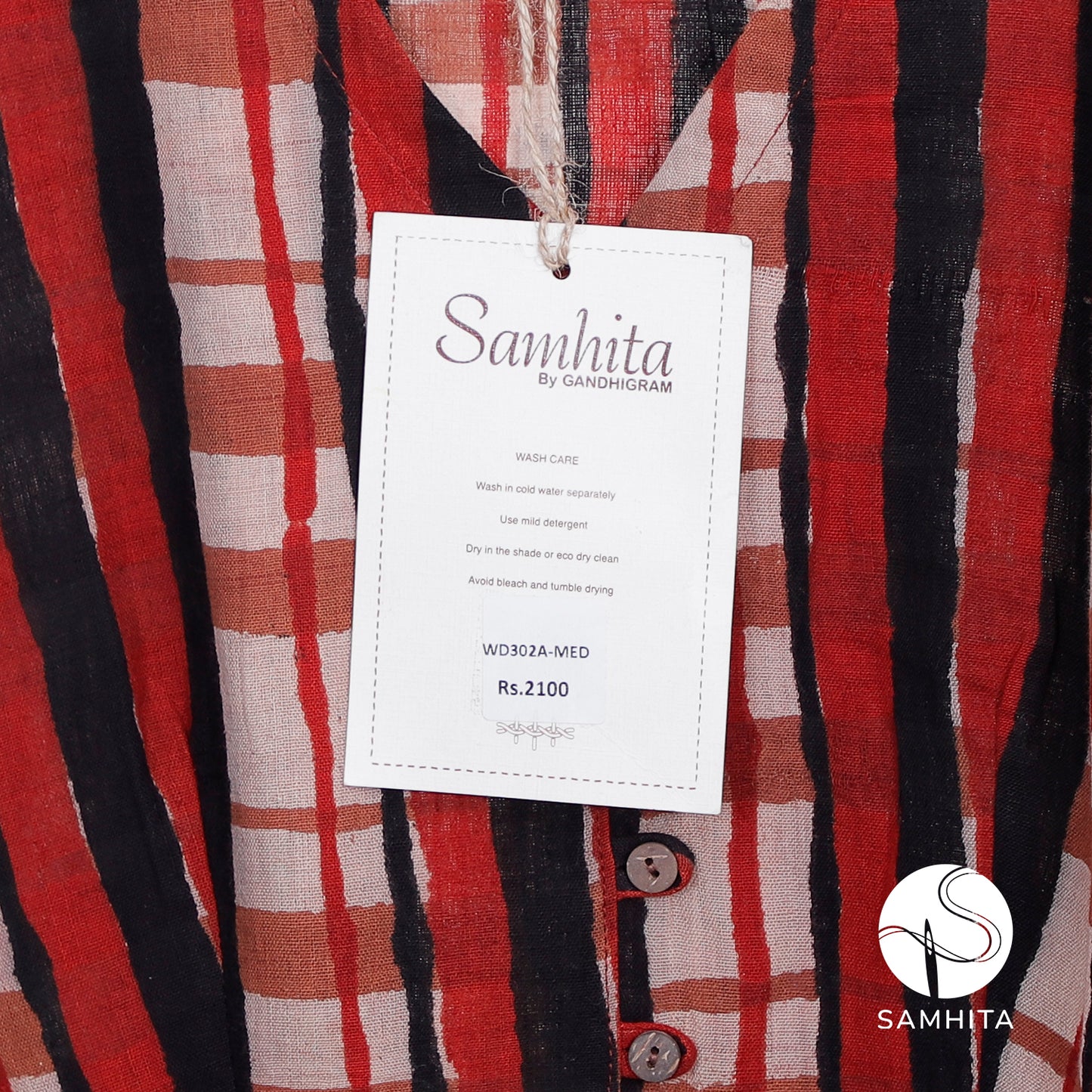 Hand-block-printed dress crafted from hand-spun, handwoven cotton khadi (WD302A)