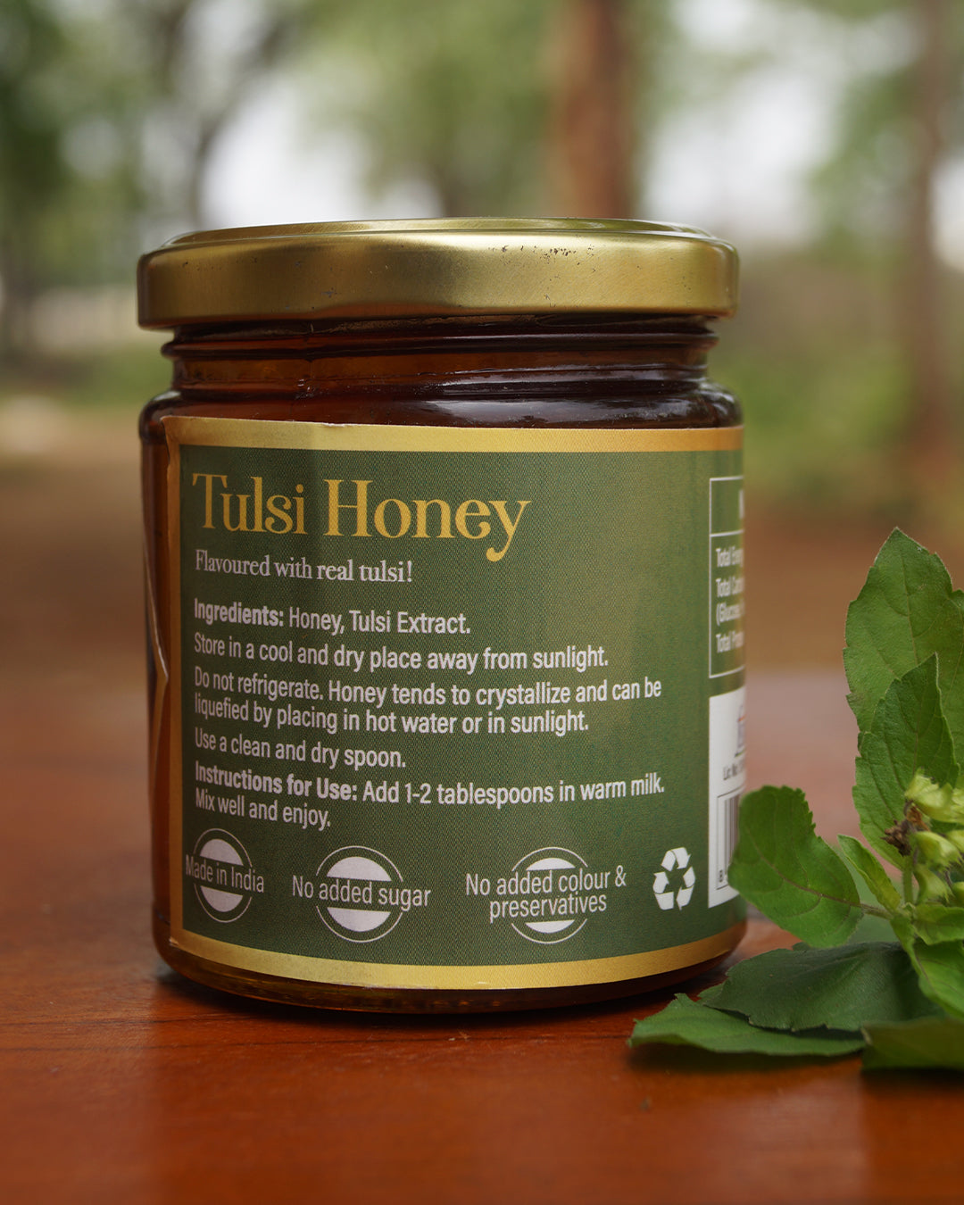 Tulsi Honey is renowned for its stress-relieving properties and its ability to support respiratory health. It acts as a natural adaptogen, helping the body cope with physical and mental stress while boosting lung function. A teaspoon a day helps in clearing toxins from the body and maintaining a steady, resilient immune system.