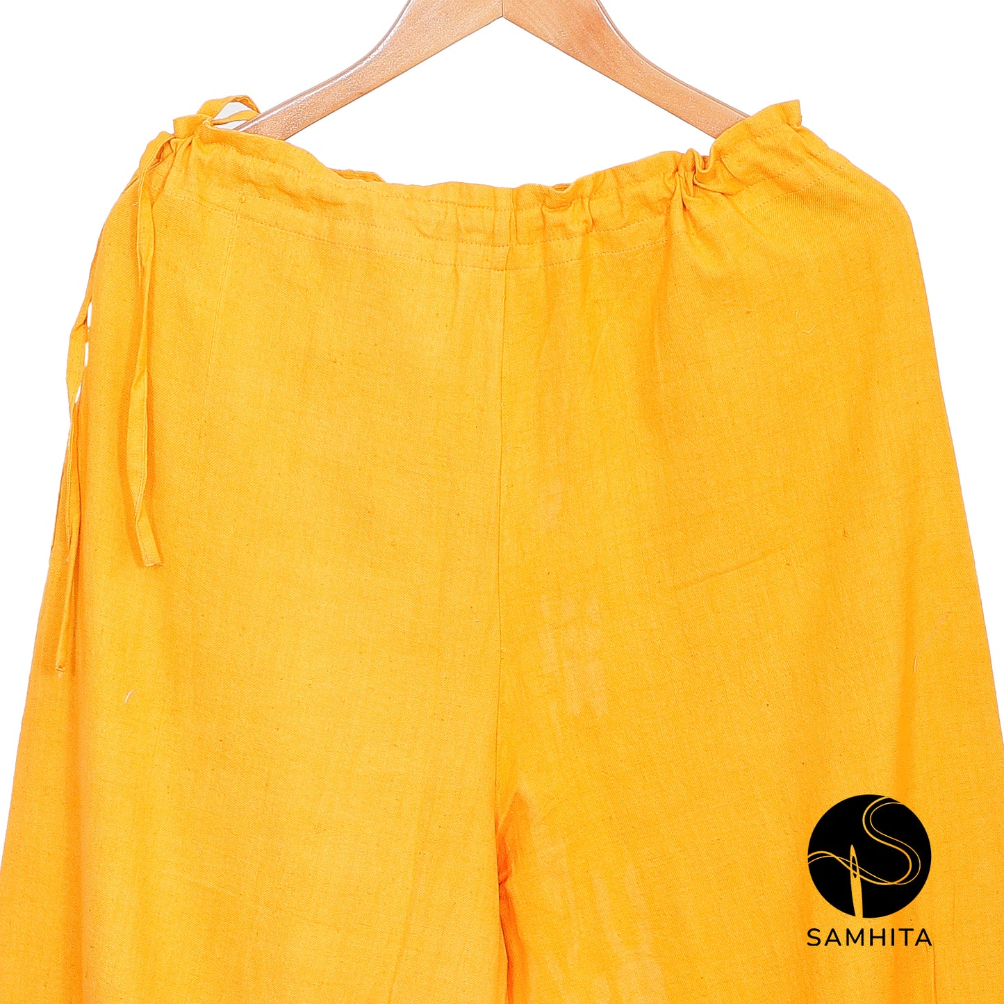 Perfect for yoga or casual workouts, these yellow pants offer a roomy fit, a secure tie waistband, and functional pockets.