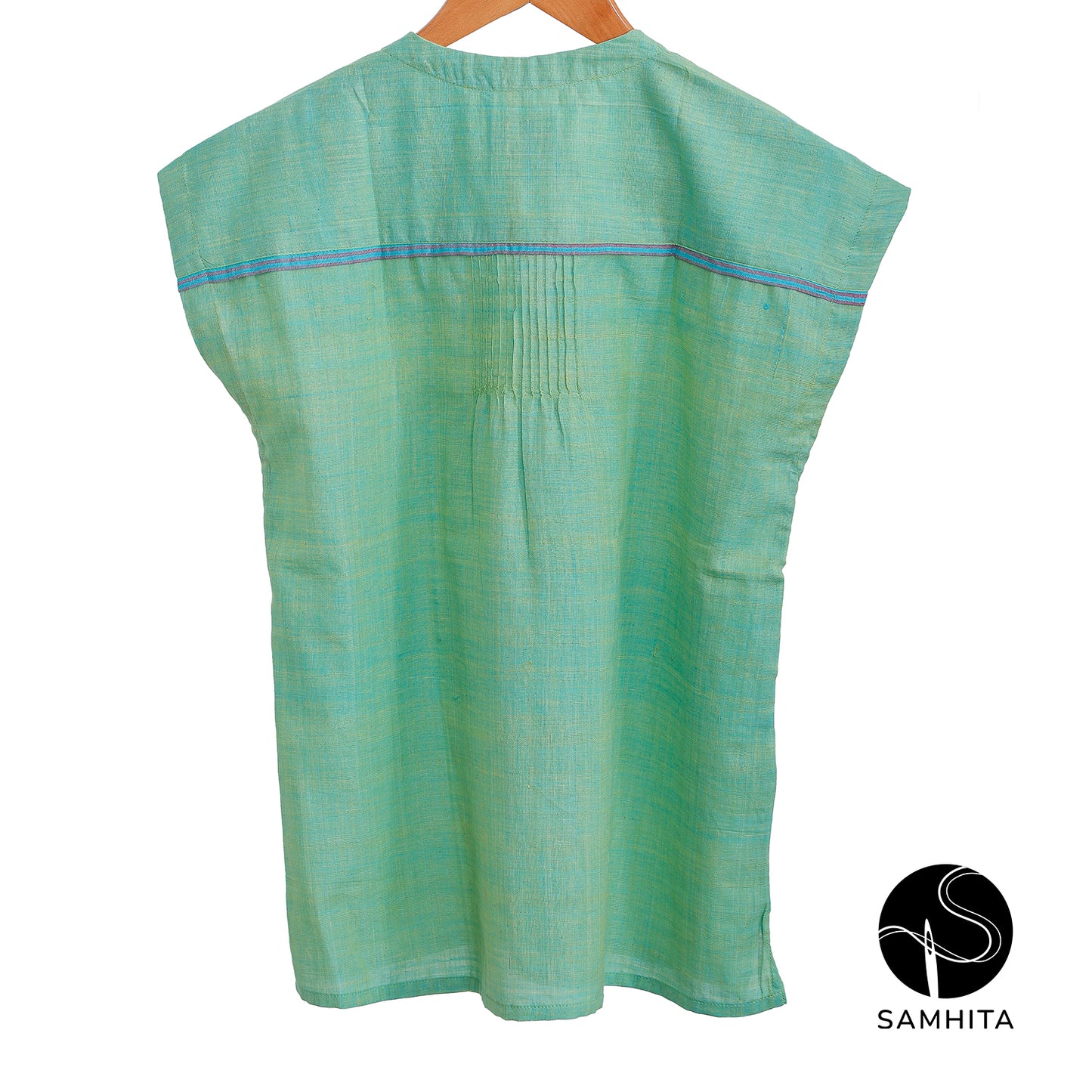 Blue-green pastel top with cap sleeves and contrast detail in the center (WT208D)