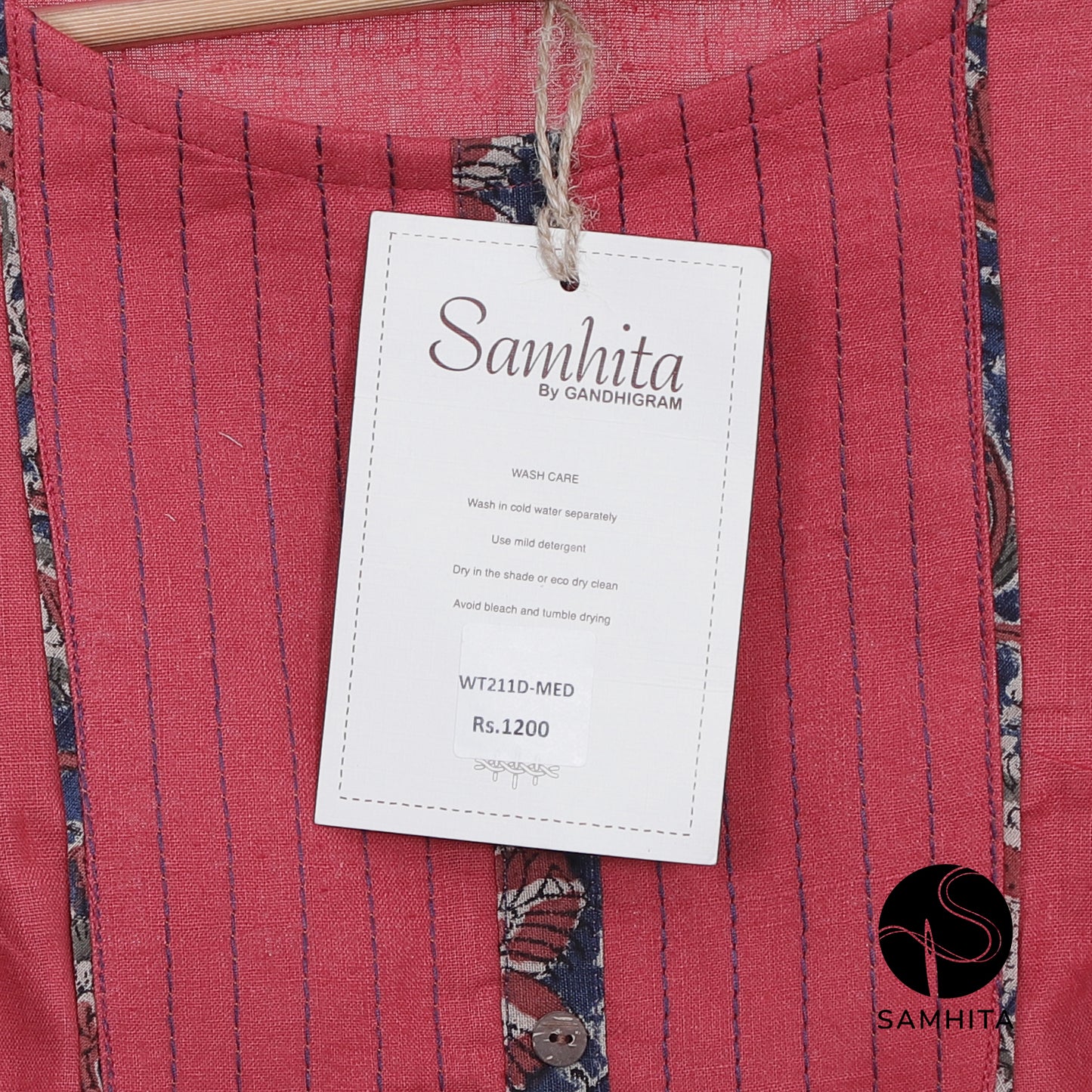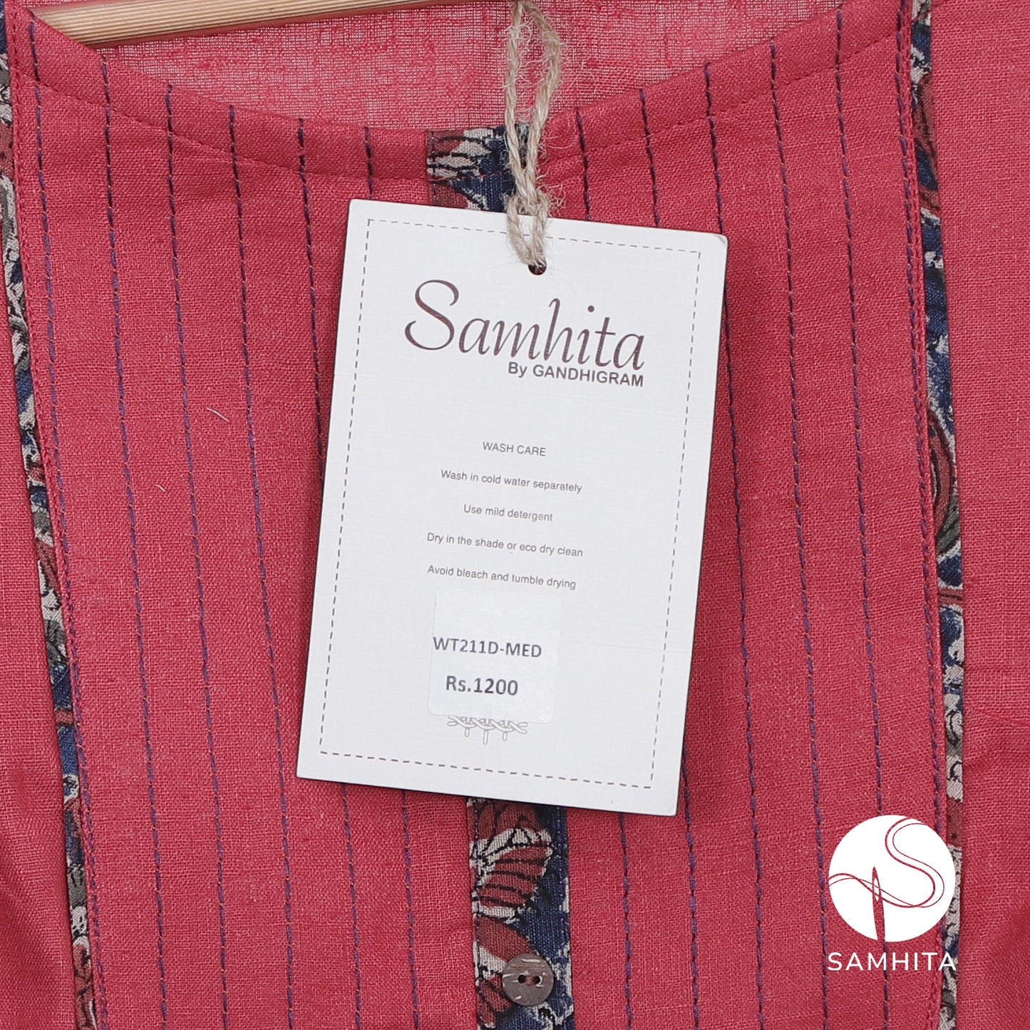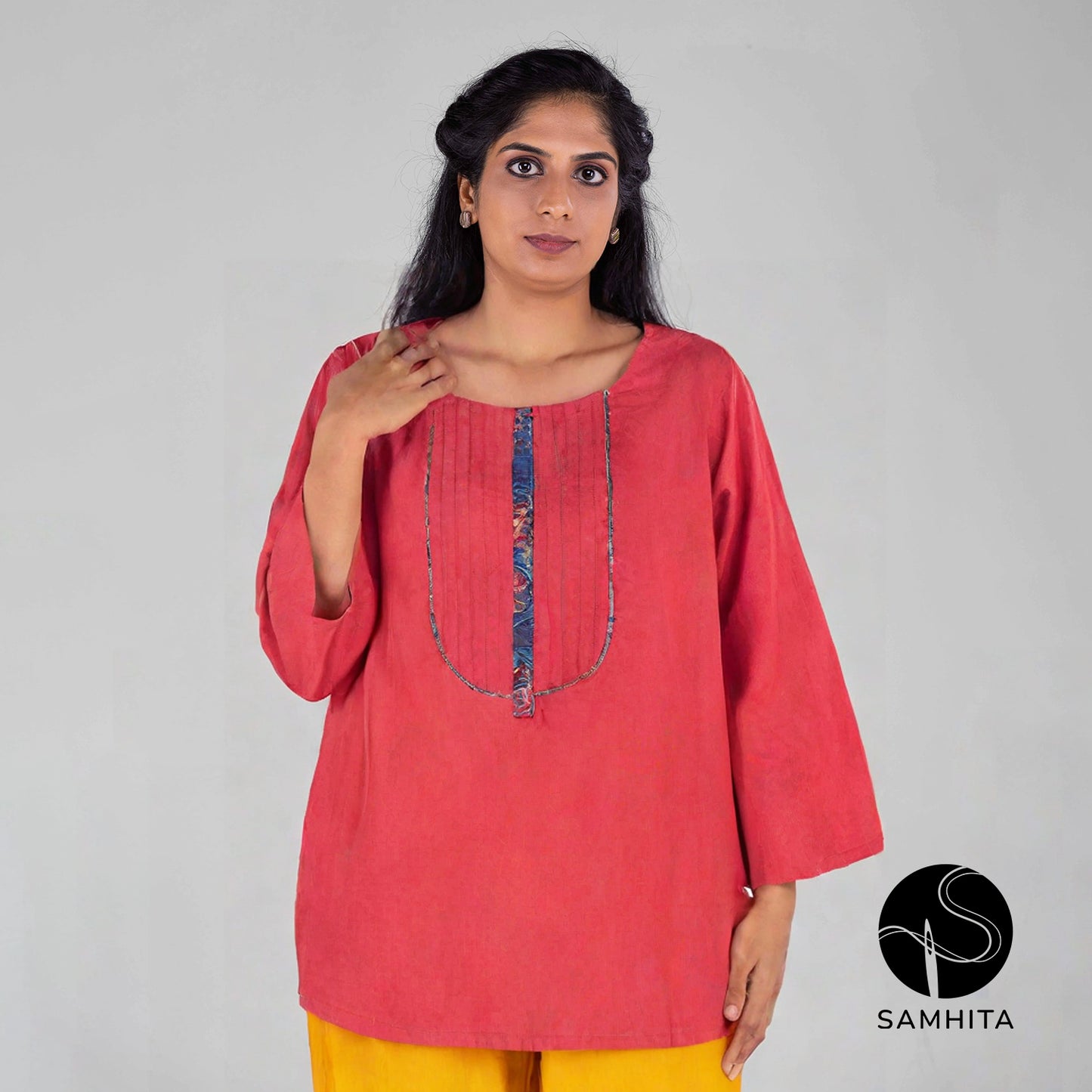 Make a bold statement with this red short top, featuring delicate yoke stitching and wide sleeves for a chic, contemporary vibe