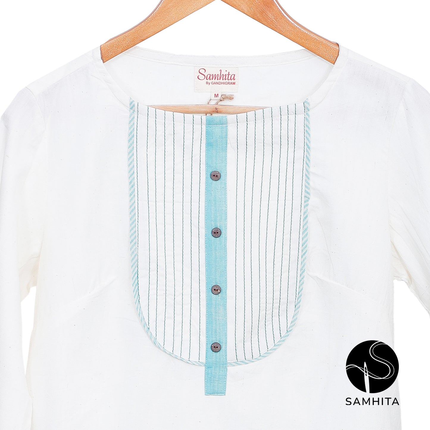 Crisp and versatile, this white short top comes with a minimalist yoke design and wide sleeves, ideal for a polished and timeless look.