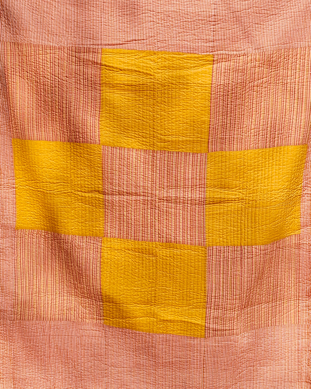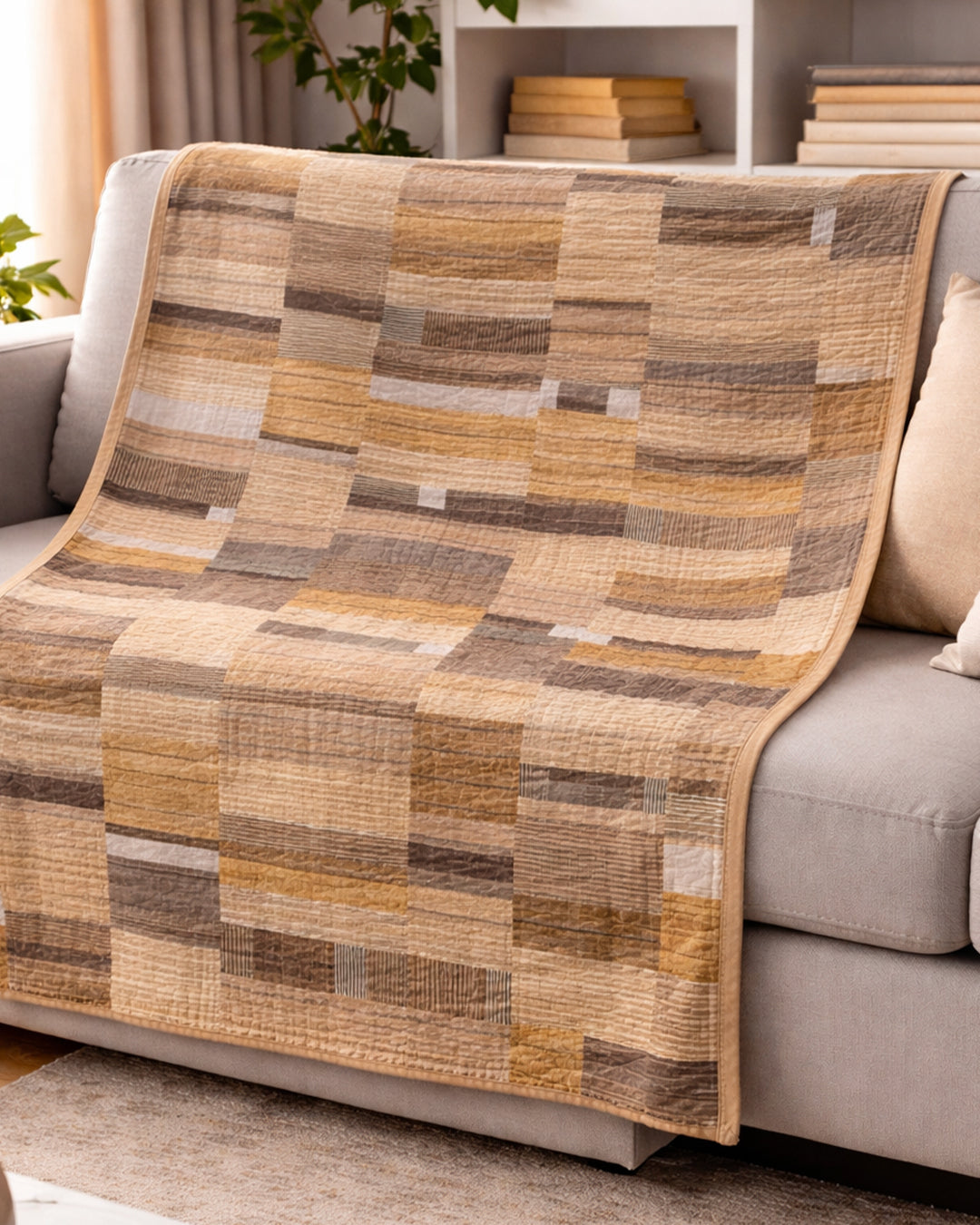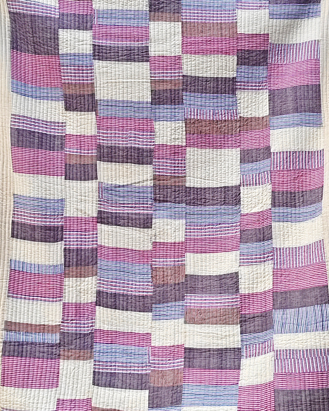 Back: Authentic Kora Khadi. The reverse side features the raw, unbleached beauty of Kora fabric. Soft yet durable, this skin-friendly backing provides a rustic, earthy feel against the skin and ensures the quilt remains slip-resistant on your bed.t
